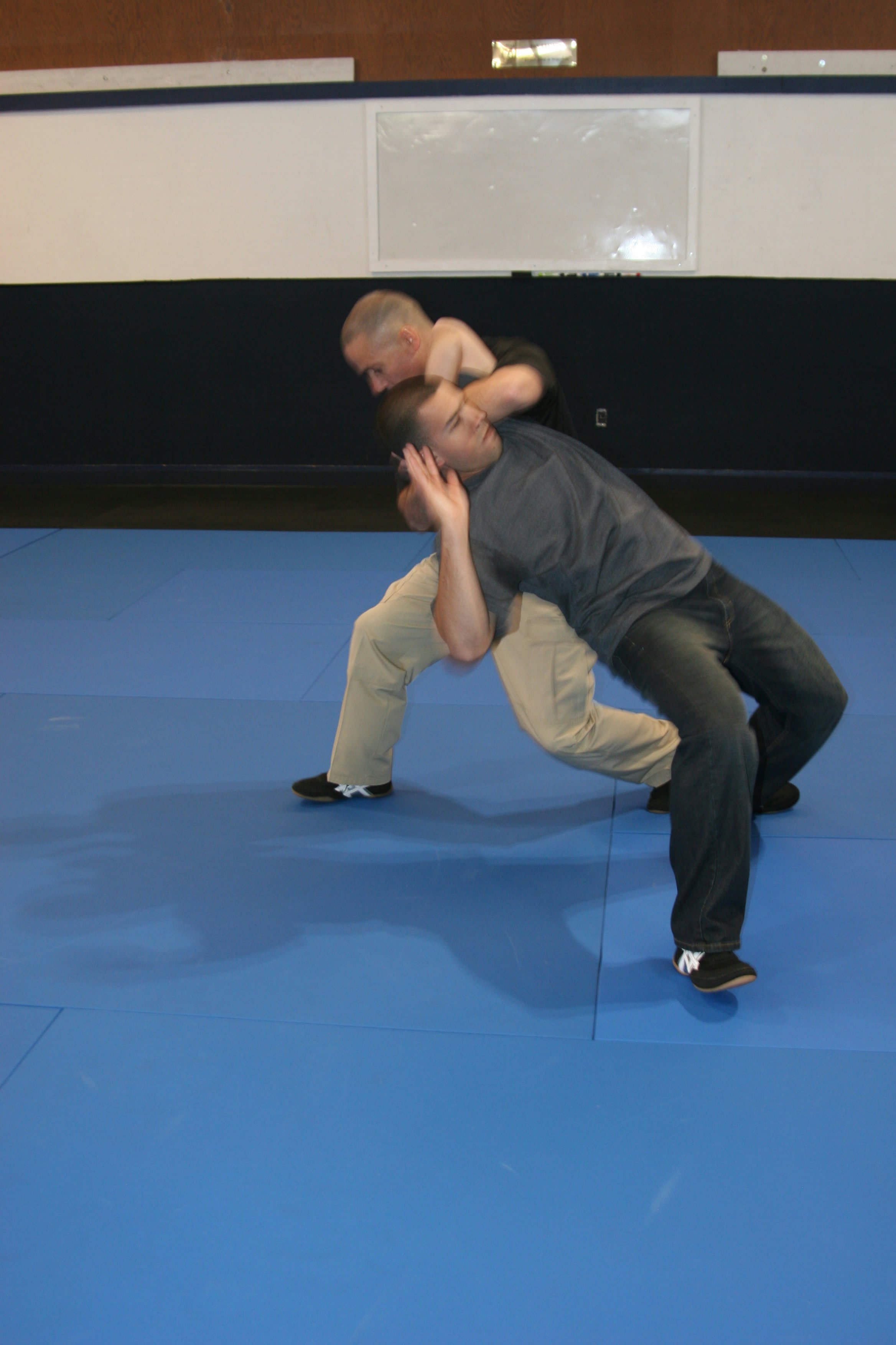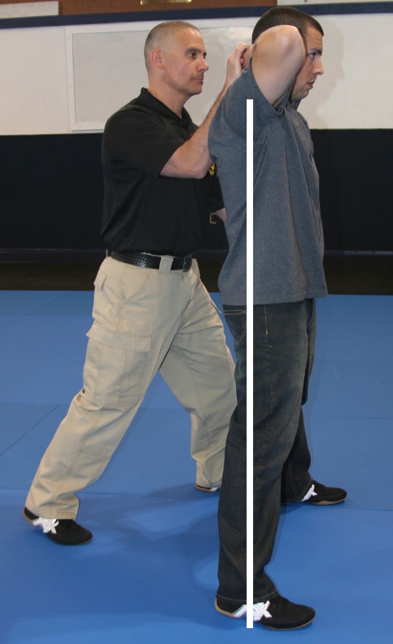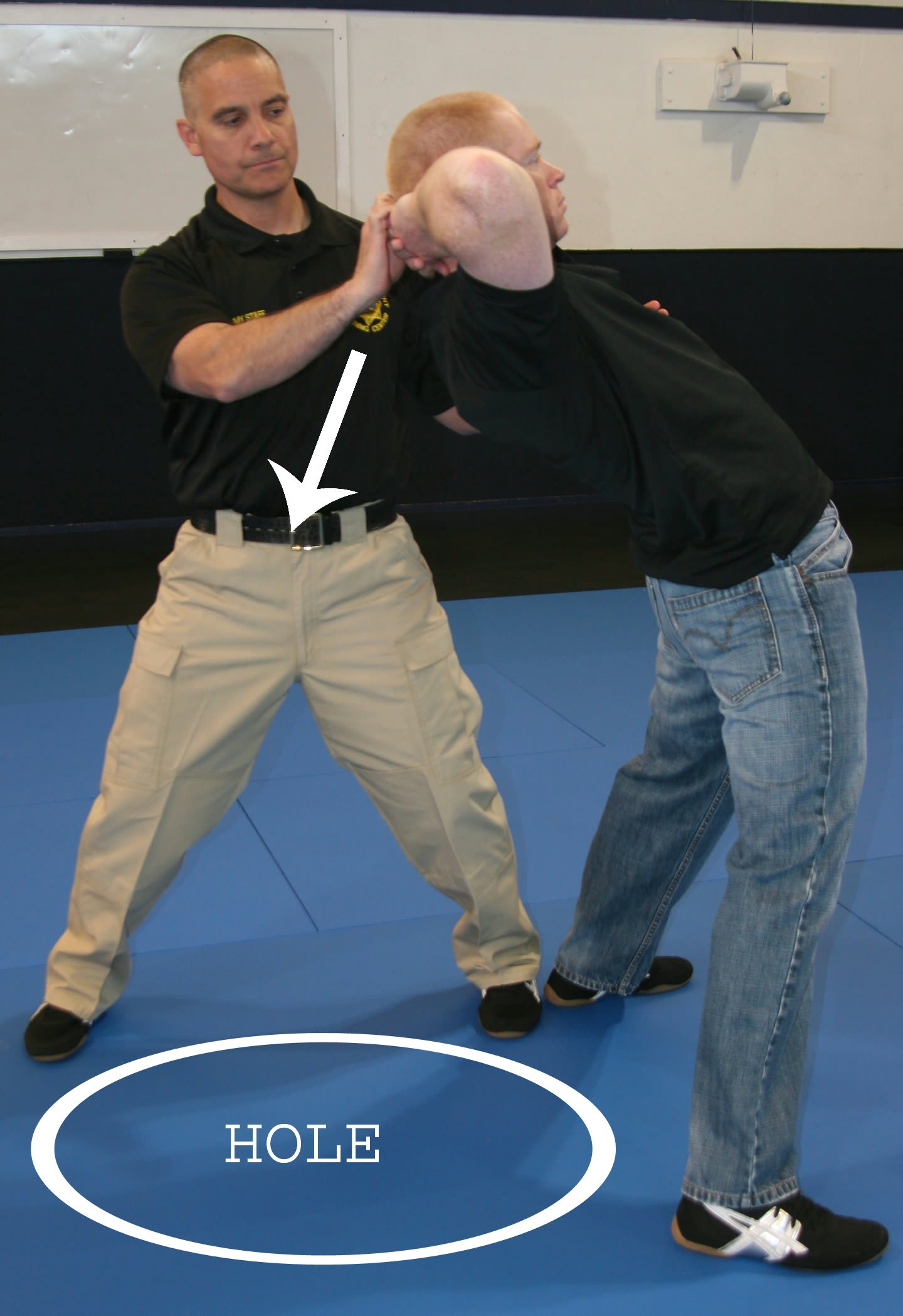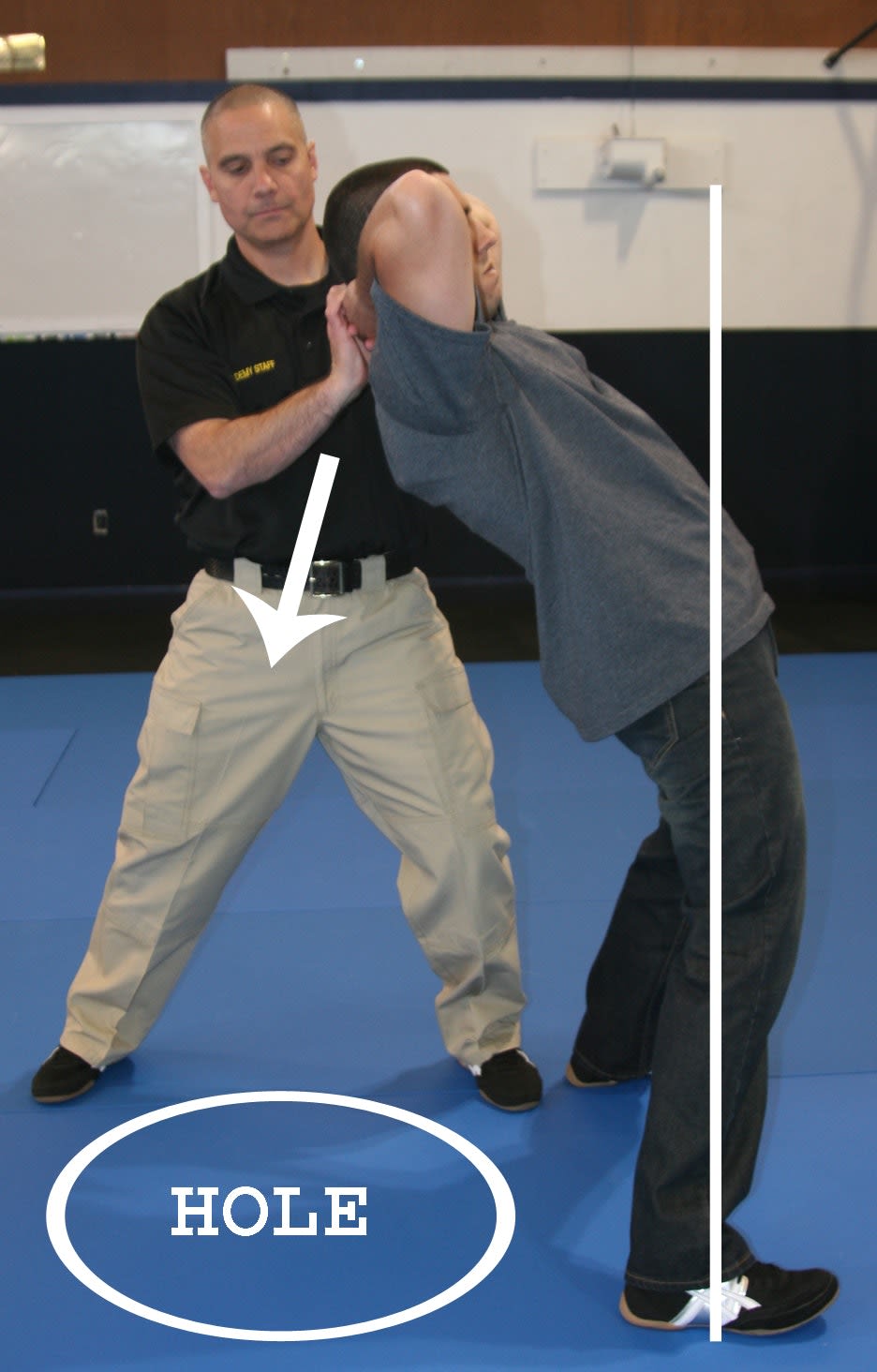 Quickly drive your hips and shoulders toward the hole, taking the suspect with you.