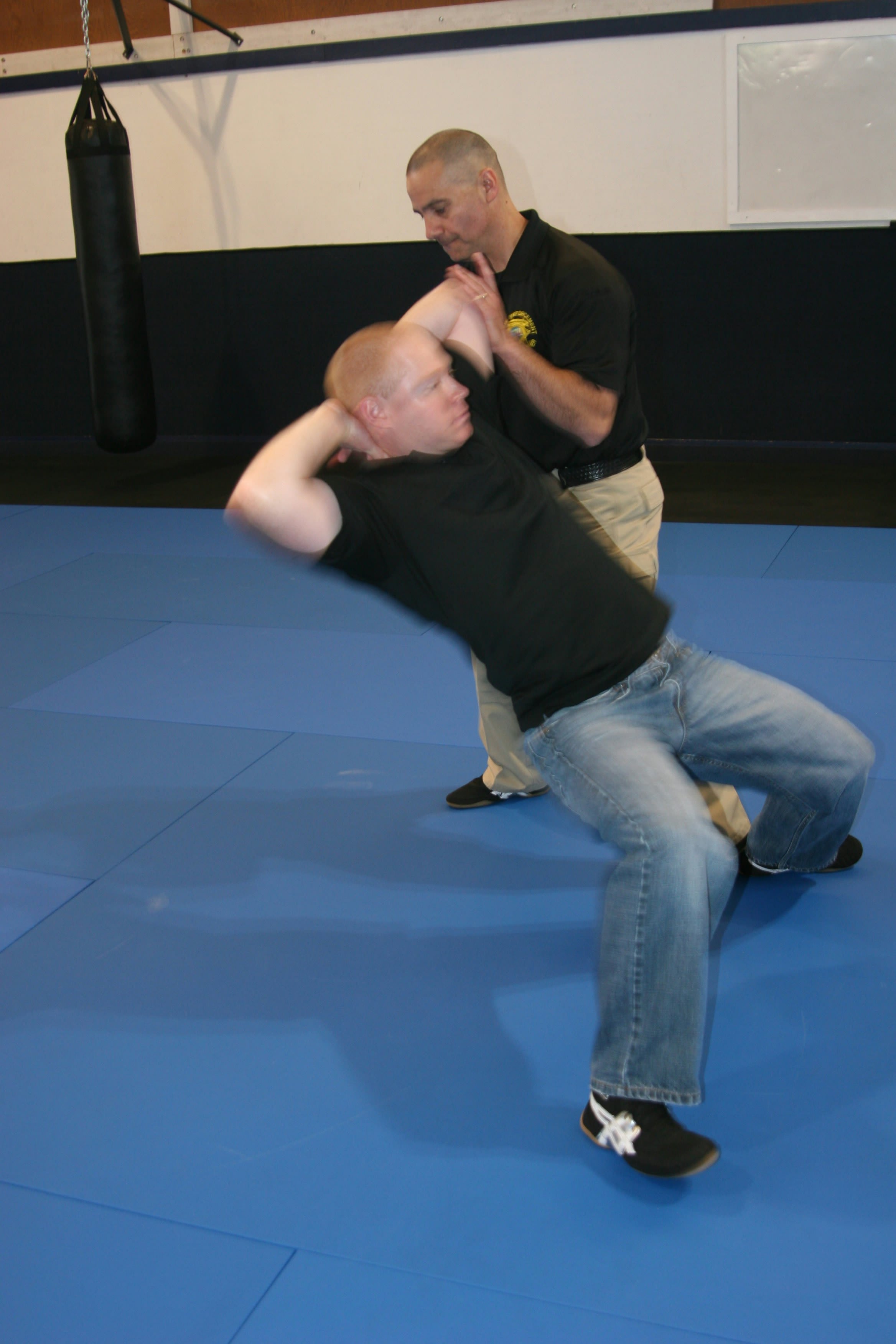 Continue pulling as you rotate your hips and shoulders, driving the suspect into the hole.
