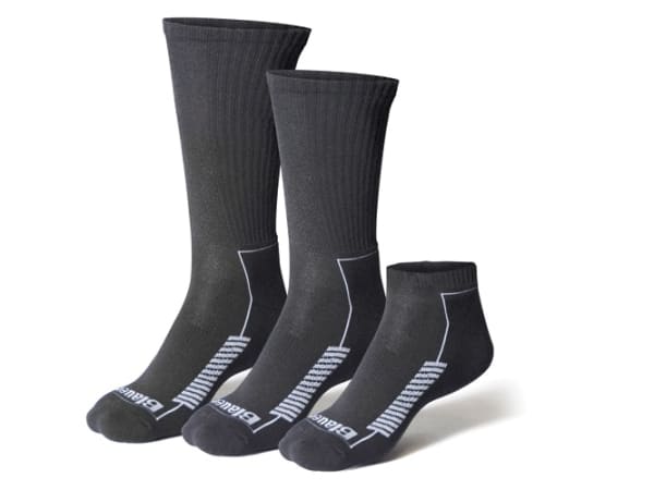USA-made Year Round Crew Socks from 5.11 Tactical come in crew- and over-the-calf lengths and feature TransDry cotton and copper threads for enhanced breathability and antimicrobial performance. Other features include reinforced heel, sole, and toe; added arch and calf support; and Nano-Glide threads for enhanced blister prevention.