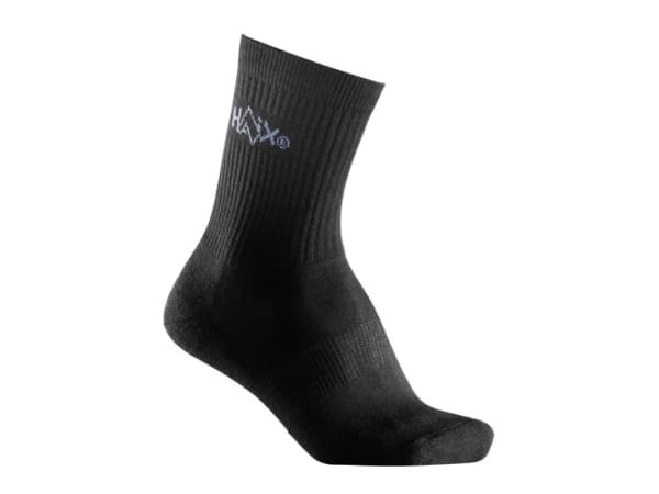 Haix multifunction socks have a combination of merino wool, polypropylene, polyamide, and Elasthan for better temperature control and moisture wicking than cotton. A reinforced metatarsus area protects against blistering and pressure points, and a rubber-free cuff edge prevents slipping and tightening. Added cushioning in the heel and ball area of the sock adds extra protection and comfort.