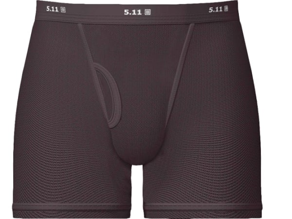 Made with a polyester/spandex blend, 5.11 Tactical's 9-inch Sports Boxer Briefs have great breathability and are comfortable and quick-drying, thanks to 3D moisture-wicking technology. Available in black or white.