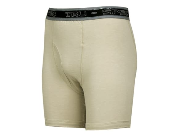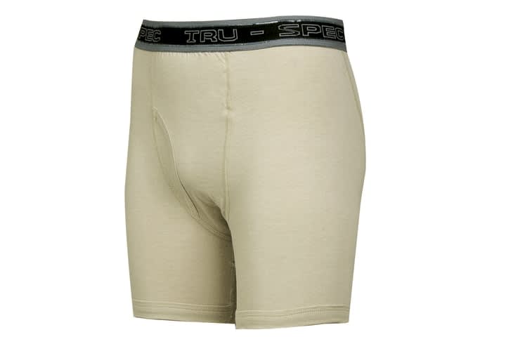 Tru-Spec Cordura Baselayer Boxer Briefs offer flat-seam construction, including on-access fly to reduce friction and minimize abrasion. The gripper on the exterior waistband helps secure shirttail. Constructed from 60/40 cotton nylon Cordura Baselayer jersey knit fabric, these technologically advanced undergarments are available in black and sand, sizes Small–3X Large.