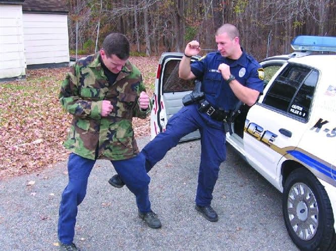 A swift kick can do wonders in a violent confrontation, but you have to know how to deliver it. Law enforcement agencies equip and train officers with pistols, rifles, shotguns, batons, OC, TASERs, canines, horses, basllistic shields, battering rams, emplty hand self defense, and countless other potentially dangerous law enforcement tools, but may be hesistant when an officer properly and justifiably uses kicks for self-defense or to subdue a suspect. The U.S. Supreme Court held in Graham v. Connor that the reasonableness of an officer's actions must be judged by the circumstances at the time the force is used. It did not restrict of limit the tactics that an officer can employ.
