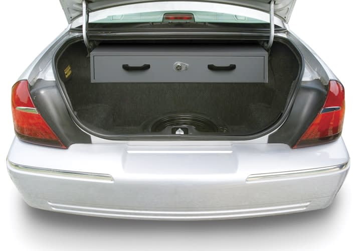 In addition to its custom-designed weapons racks, cabinets, and cases, DLS Weapons Storage Systems sells Tufbox vehicle lockboxes that provide secure and efficient stowage for firearms, evidence, and other equipment. Trunk-mounted designs install in standard cruisers. Four different Tufbox models are designed to mount in the rear compartment of an SUV.