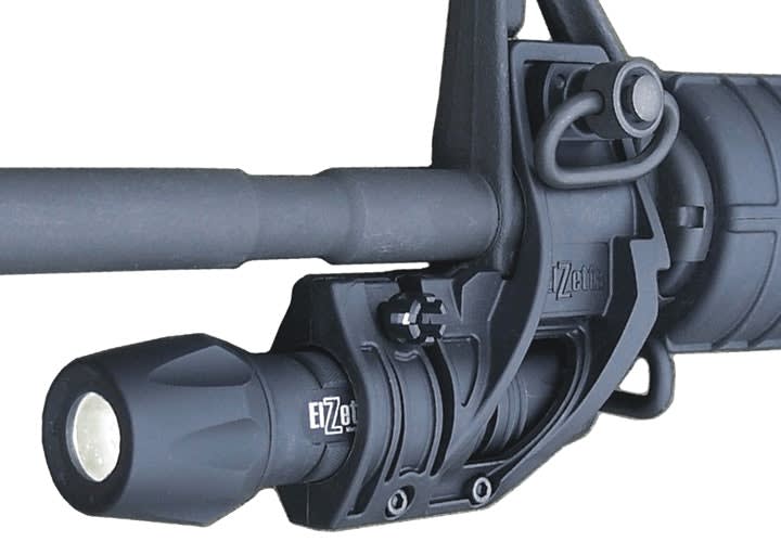 Elzetta provides a line of versatile and durable flashlights that can be attached to long guns with the company's mounts. The Elzetta ZFH1500 Flashlight Mount attaches to the standard A2 front sight base of AR15-style rifles and carbines, providing an ambidextrous mounting platform for tactical flashlights. It adds no width to the rifle and does not interfere with storage in vehicle racks and gun cases. Using an optional thumb screw, flashlights can be installed and removed rapidly without tools. No rail system is required.