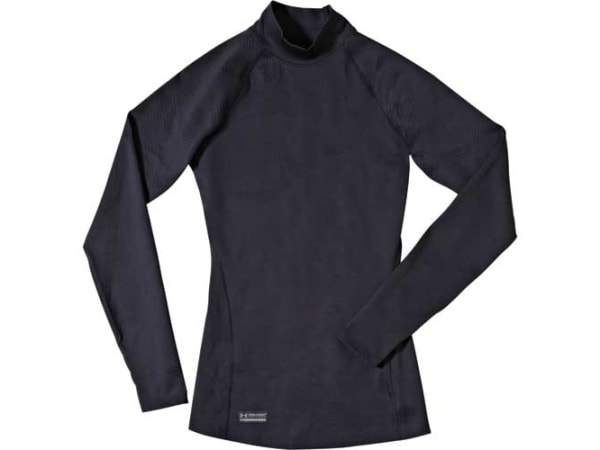 Under Armour offers both a mockneck shirt and leggings for women in the Tac ColdGear line, which uses Infrared technology to reflect the wearer's body heat for extra warmth. The Women Mock and Women Legging feature dual-layer EVO ColdGear for a durable, slick, fast-drying exterior; four-way stretch fabrication for greater mobility and to maintain shape; signature moisture transport system to wick sweat away from the body; anti-odor technology; and smooth, chafe-free flatlock seam construction. Both are available in sizes XS-XL. The Women Mock is available in Marine OD green, black, desert sand, and dark navy blue. The Women Legging is available