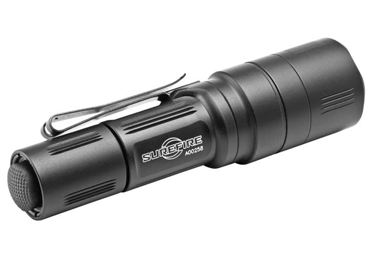 SureFire's EB1 Backup is a compact and powerful dual-output flashlight designed as a backup light for patrol officers and a primary light for plainclothes officers. The Backup features a virtually indestructible LED emitter and a precision lens combination that produces 200 lumens. Constructed of Mil-Spec hard-anodized aluminum, the Backup is rugged enough for some of the toughest duty conditions. A two-way pocket clip allows head-up or head-down carry, and can be used to secure the light to a cap brim.