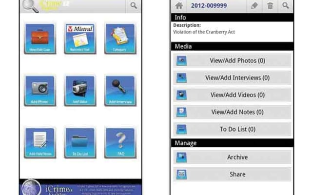 Check out our sampling of 10 mobile apps for smartphones and tablets that will ease your patrol workflow. For full write-ups on each app, read our feature, "10 Great LE Mobile Apps." Screenshots courtesy of vendors.