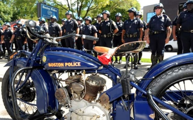 Boston celebrated two centennials in 2012—the building of Fenway Park for the Boston Red Sox and the founding of the Boston Police Department's motor unit, which is known as the Mobile Operations Patrol (MOP) unit. The two centennials came together on Sept. 16, when agency brass recognized the unit's heritage during a ceremony in front of Fenway's "green monster" wall in left field. Photos courtesy of Robert Anthony.