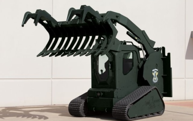 Ring Power's The Rook offers law enforcement agencies a versatile, tracked tactical vehicle with ballistic armoring rated to stop Level IV threats including armor-piercing rifle rounds. The Rook includes an armored deployment platform, hydrailic breaching ram, vehicle extraction tool, grapple claw, and 25-foot gooseneck trailer. The vehicle retails for $250,000. Photos courtesy of Ring Power.