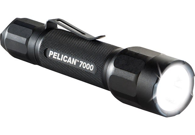 The lightweight Pelican 7000 LED flashlight weighs in at a mere 5.6 ounces with batteries (two CR123 lithium cells, included) and provides lighting modes to adapt to almost any situation: high (602 lumens), medium (311 lumens), low (64 lumens), and strobe. The high-efficiency LED shines for up to 1.5 hours in high mode and 16 hours in low mode. In addition to standard functionality, it offers four separate programmable lighting modes. To allow for alternative or extended use the flashlight can also be operated with optional rechargeable cells.