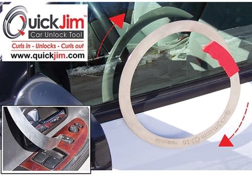 QuickJim is a new spiral tool that curls under a car's window to touch the unlock switch located on the armrest or door. QuickJim is designed to rotate out the way it went in and never get stuck. Thin and strong, Quickjim will produce five times more pressure at the tip than a wire tool, yet it is three times thinner. When compressed, it will easily lay flat in the trunk of a patrol car until it is needed again. QuickJim is manufactured in the USA and is available in a 10-inch and 16-inch diameter. Both can be purchased direct from the company’s Website or from an equipment supplier.