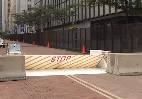 Delta Scientific's Delta MP5000 mobile deployable vehicle crash barriers were used by the Secret Service at the 2016 Republican National Convention in Cleveland to protect attendees from terrorist vehicle attacks and errant driver mistakes. These mobile deployable vehicle crash barriers carry a K8 rating (M40 ASTM rating), stopping 7.5-ton vehicles traveling 40 mph. the totally self-contained MP5000s can be towed into position to control vehicle access within 15 minutes. Once positioned, the mobile barricades unpack themselves using hydraulics to raise and lower the barriers off their wheels. DC-powered pumps then raise or lower the barriers.