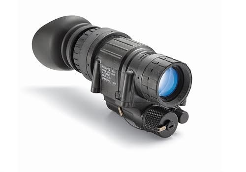The PVS-14 is designed to be the all around best multi functional night vision monocular available. Head or helmet mounted, the PVS-14 from Night Vision Devices allows the user to retain their night adapted vision in one eye while viewing their surroundings through the illuminated eyepiece of the PVS-14. Another strong ability is for the system to be weapon mounted behind most collimated daylight aimers and Reflex sights such as the ACOG, Aimpoint, and EO Tech systems. This allows the user the ability to use their PVS-14 both as a night vision monocular for increased mobility and tactical awareness and as a short-range weapon sight.