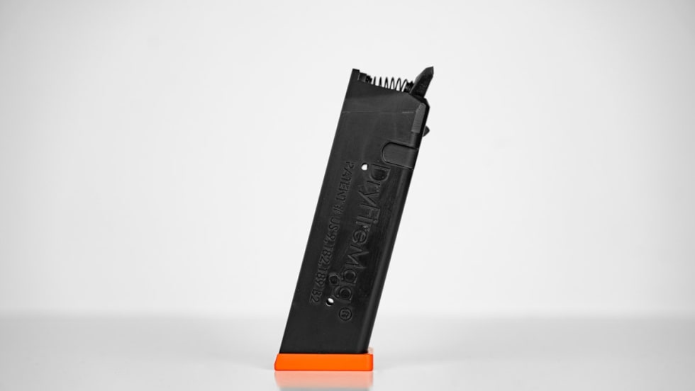 Completely self-contained, the DryFireMag fits into the magazine well with no alterations to your pistol. Installs in seconds. Simulates trigger release and reset without using the firing pin.