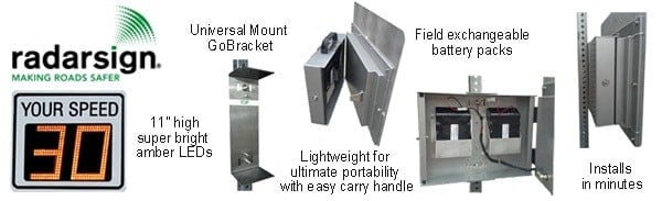 Radarsign's TC-400 is a portable/battery powered radar speed sign weighing only 20 pounds.