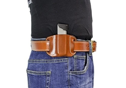 DeSantis Gunhide's new magazine pouch, The Reliant, style A84, is ambidextrous and keeps the magazine both high and tight. It is built from premium black or tan saddle leather. It is immediately available for most common handgun calibers and accommodates up to a 1 3/4" belt loop.