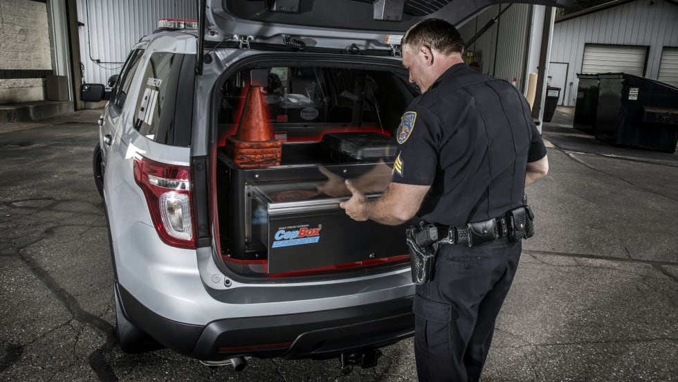 CTECH’s CopBox Cabinet offers a secure, durable, and lightweight solution for storage in the SUV cargo bay.