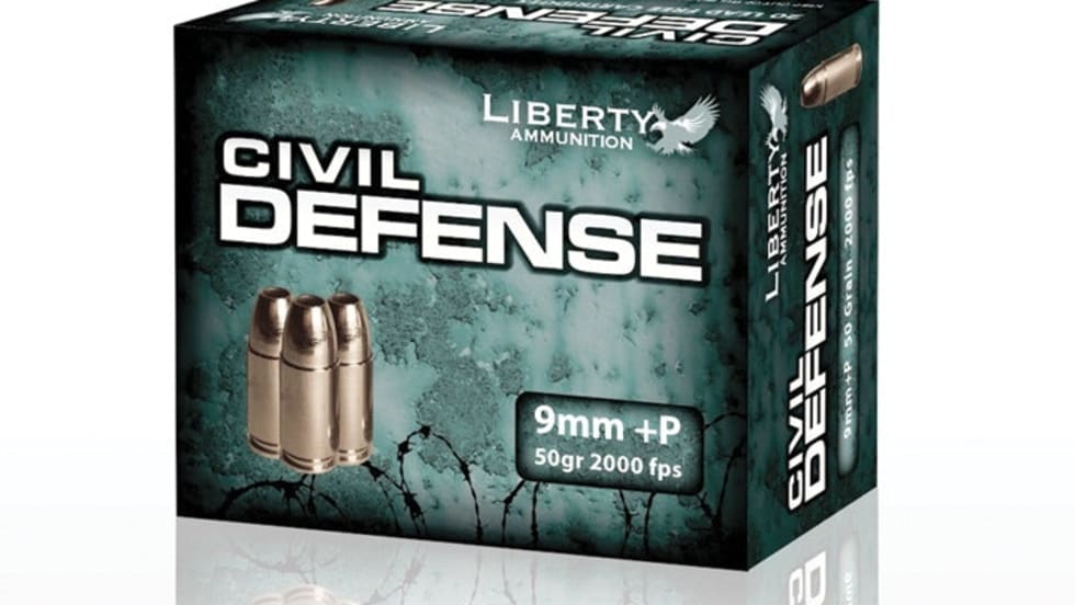 Liberty Ammunition's Civil Defense line of personal defense ammunition is available in 9mm, .40 S&W, .45 ACP, and .380 Auto. It's designed to have twice the effective range of standard ammo