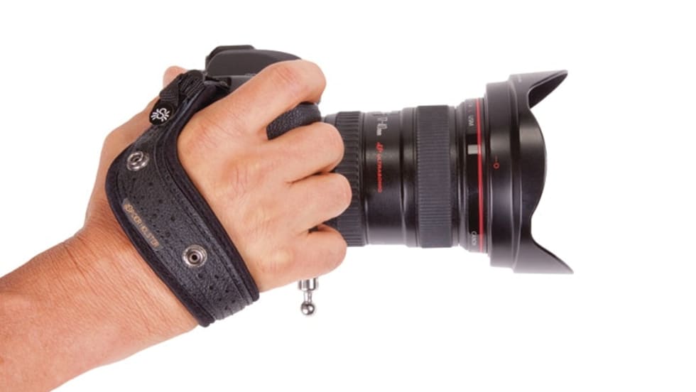 The SpiderPro Hand Strap's thin and extremely durable material slides in between the camera body and any tripod plate, making it a universal hand strap.
