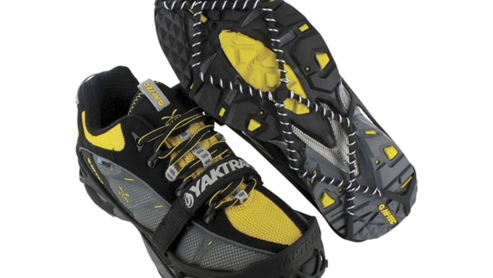 YakTrax Walk ice traction devices stretch over any footwear, from boots to jogging shoes, and stay in place to help you walk safely in cold weather.