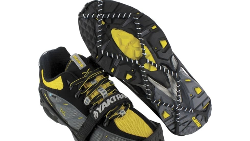 YakTrax Walk ice traction devices stretch over any footwear, from boots to jogging shoes, and stay in place to help you walk safely in cold weather.