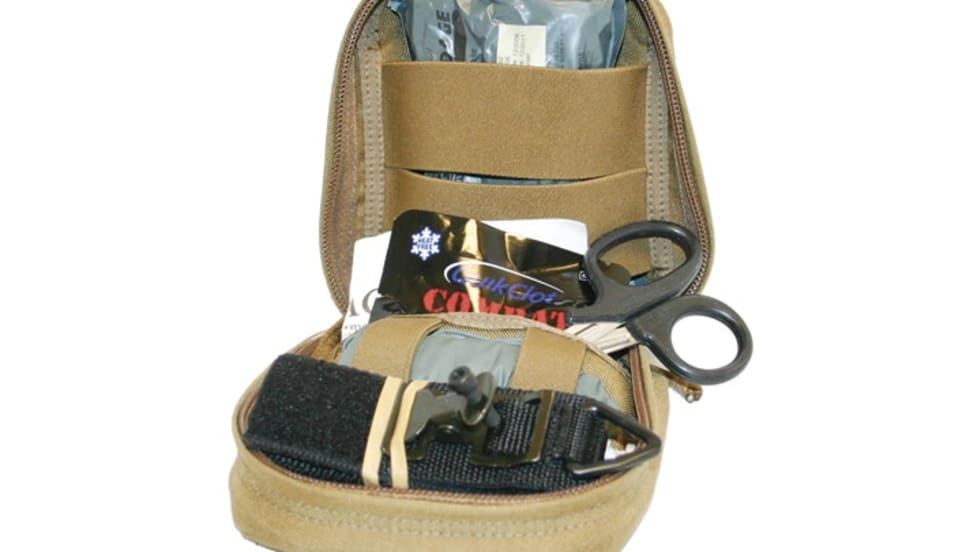 The Medical Pouch from Spec-Ops Brand is large enough to carry all of the components of the new IFAK (Improved First-Aid Kit), and it has a permanently attached red webbing top strap for immediate identification.