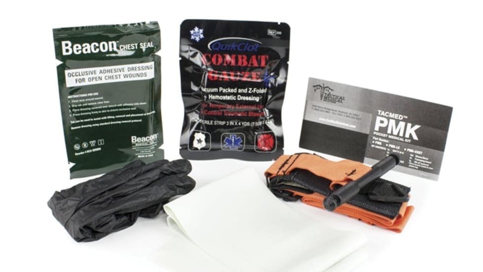 The TacMed Pocket Medical Kit from Tactical Medical Solutions provides the individual law enforcement officer with the necessary medical equipment to immediately treat life-threatening traumatic injuries.