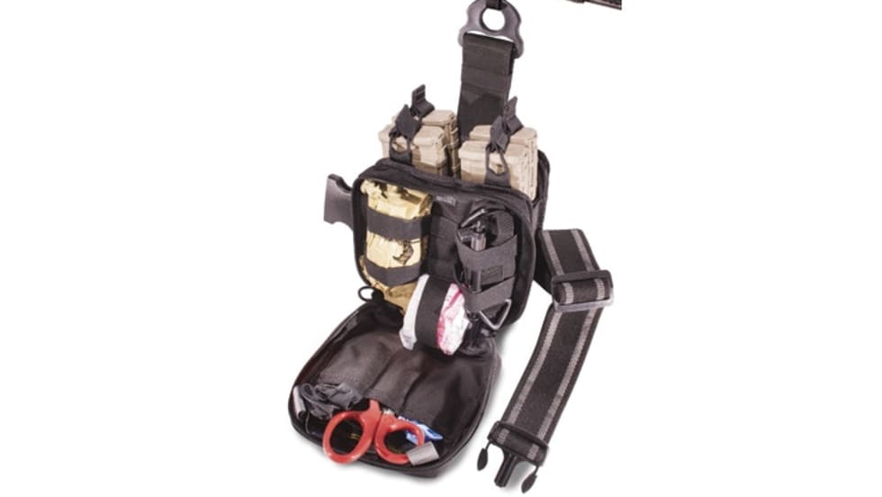 Tuff Products' Tuff Active Shooter Kit (T.A.S.K.) comes with a pouch to hold an officer's Personal Trauma Kit (P.T.K.). It is an all-in-one leg rig system.