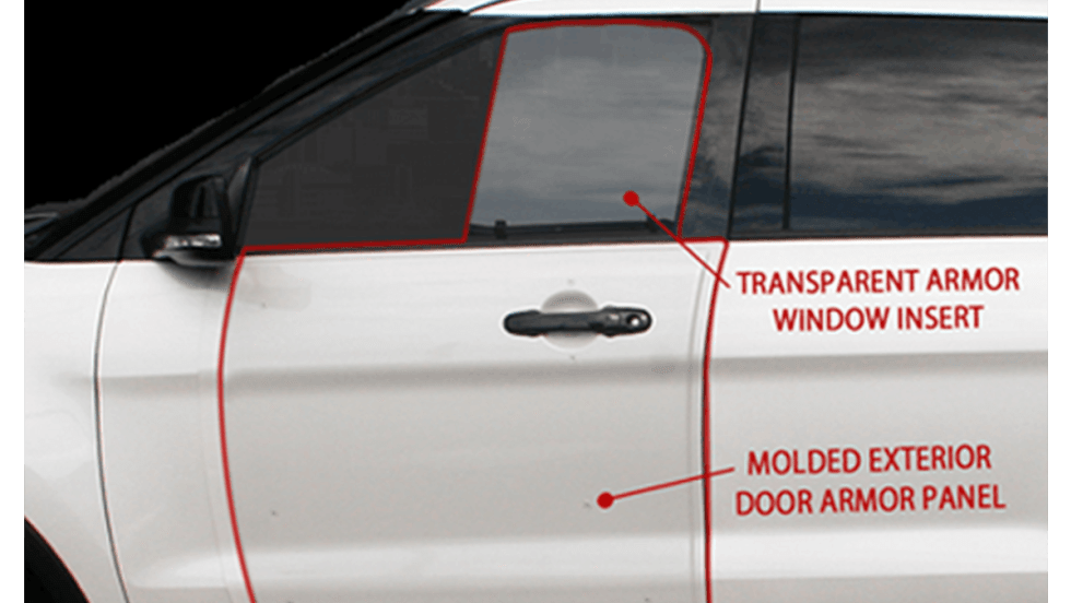 The vehicle armor provides NIJ Level IIIA or NIJ Level III protection.