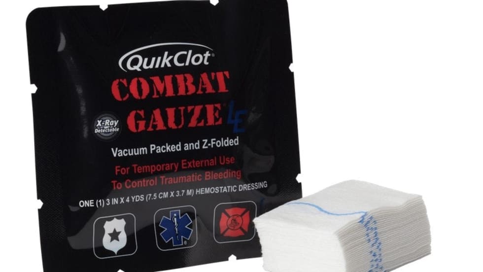 QuikClot Combat Gauze LE is a 3-inch x 4-yard strip of z-folded soft, white, nonwoven, hydrophilic gauze impregnated with kaolin, an inorganic mineral that is both safe and effective in accelerating the body’s natural clotting cascade.