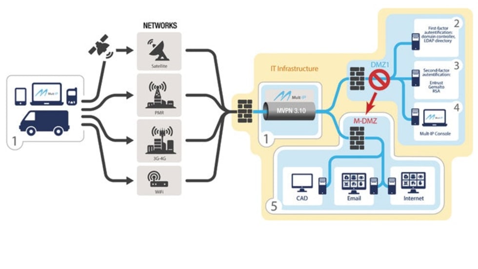 Radio IP's Mobile DMZ (M-DMZ), released with Mult-IP 3.10, allows you to secure your network while allowing access to pre-assigned core application functionality.