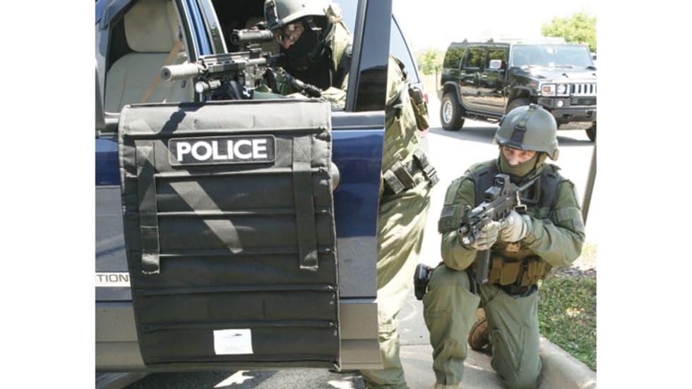 The Trooper ballistic shield is a clipboard designed to stop a bullet to the neck, face, or head once deployed.