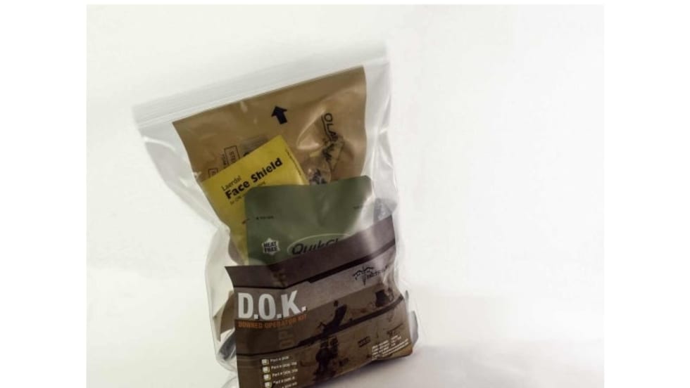 The DOK is a compact kit containing the essential items needed for treatment of serious injuries encountered by law enforcement.
