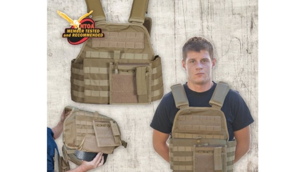 Approved by the NTOA, Fox Tactical's vest protects your vital organs, securely holding plates in the front, back, & sides. SHOT Show Booth #32010