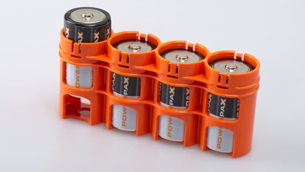 With our patented system, your batteries will stay locked in place until you are ready to slide them out and refill your flashlight or other electronic device.