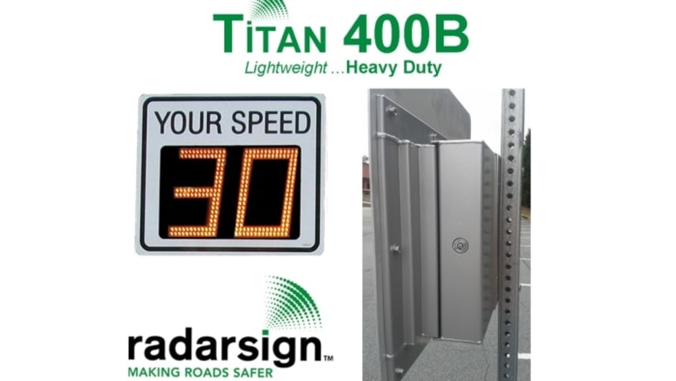 Radarsign's Titan 400B is a battery-powered radar speed sign offering the ultimate in portable traffic calming and weighing only 20 pounds.