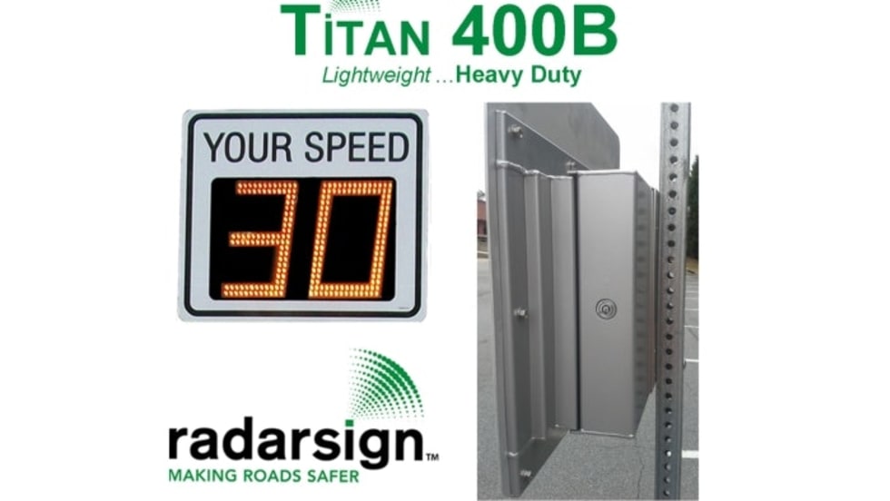 Radarsign's Titan 400B is a battery-powered radar speed sign offering the ultimate in portable traffic calming and weighing only 20 pounds.