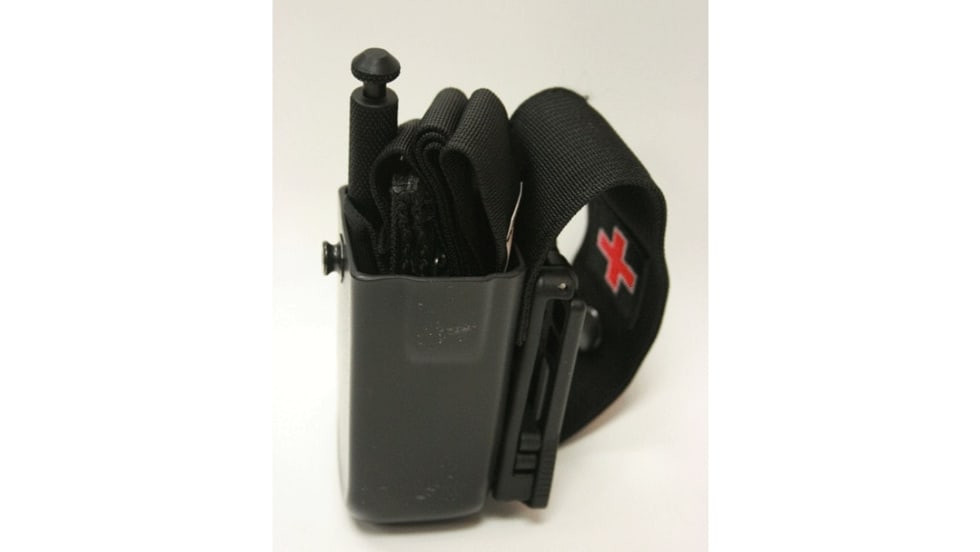 The hard-sided TQ holster is about the size of a single mag pouch with a protective top flap, and can be worn in multiple positions via MOLLE or Tek-Lok. SHOT Show Booth #20252