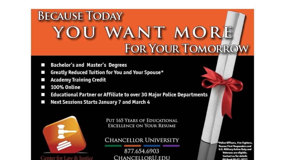 Grow your career and enrich your life with an associate's, bachelor's or master's degree in criminal justice, legal studies, business or health management from Chancellor University.