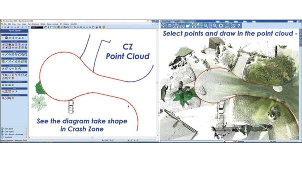 CAD Zone's CZ Point Cloud is a powerful software program that helps investigators create courtroom-ready 2D/3D diagrams and animations from the "point cloud" of data produced by a 3D laser scanner.