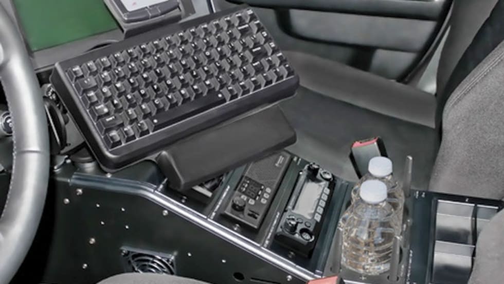 The new RAM console for the Dodge Charger police package requires no leg kit or top plate, making it almost 15 pounds lighter than its predecessor, yet still just as tough. Custom fit for the Charger and available as a completed kit or as separate components.