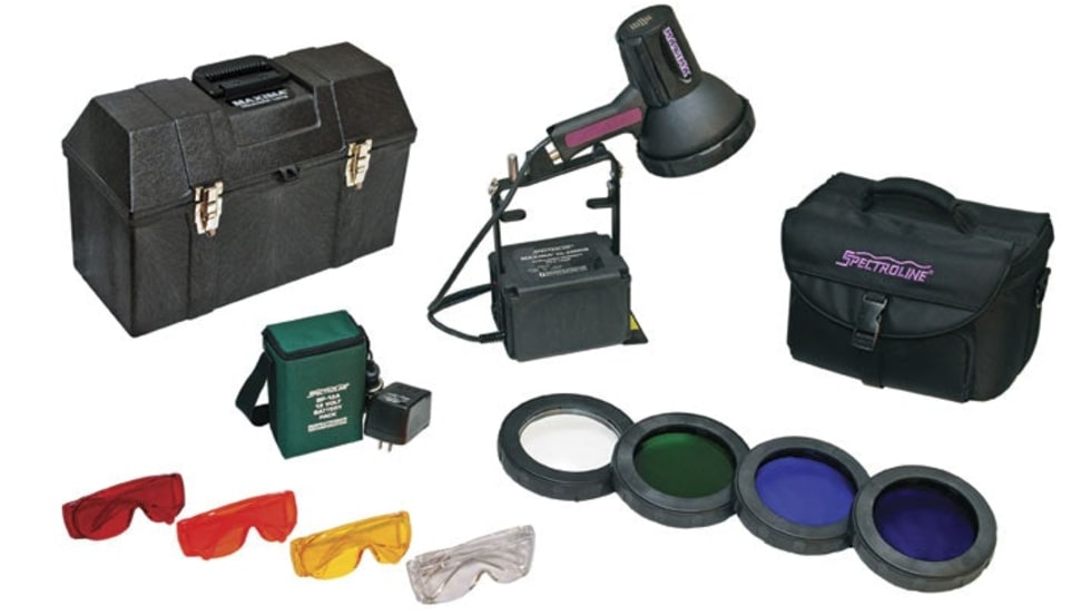 Available with either a UV spot beam or UV diffused beam, Spectronics Corp's Maxima MFK-3500 Series Forensic Light Source Kits utilize the latest Micro Discharge Light (MDL) technology to produce an ultra-powerful forensic inspection lamp.