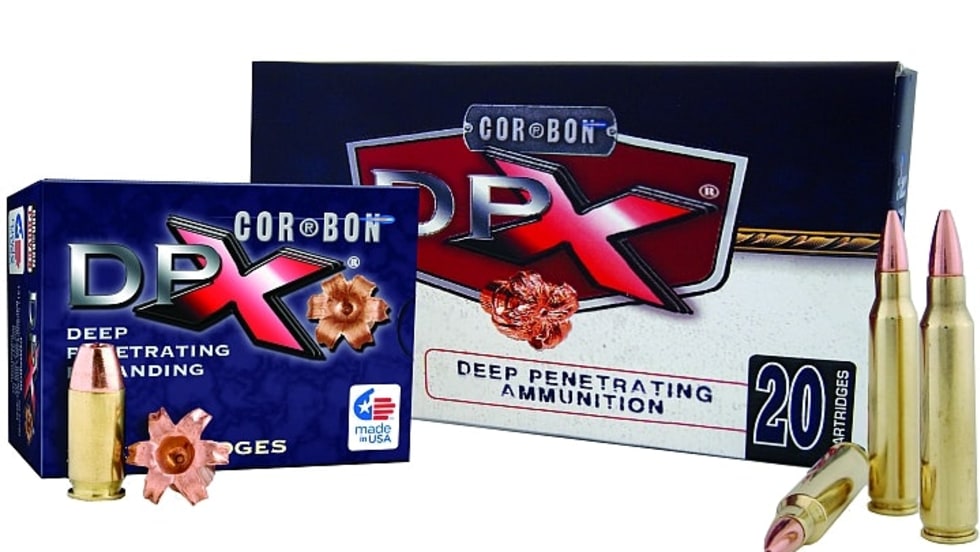Cor-Bon's DPX utilizes a solid copper projectile with a large deep hollow point. DPX has proven to be superior when put though rigorous barrier performance testing such as drywall, plywood, auto steel and glass. Penetration is in the 12-to-18-inch range.