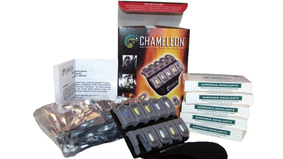 The Chameleon Training Kit, used during training, helps initial responders learn to identify the presence of toxic chemicals through a training Chameleon armband.