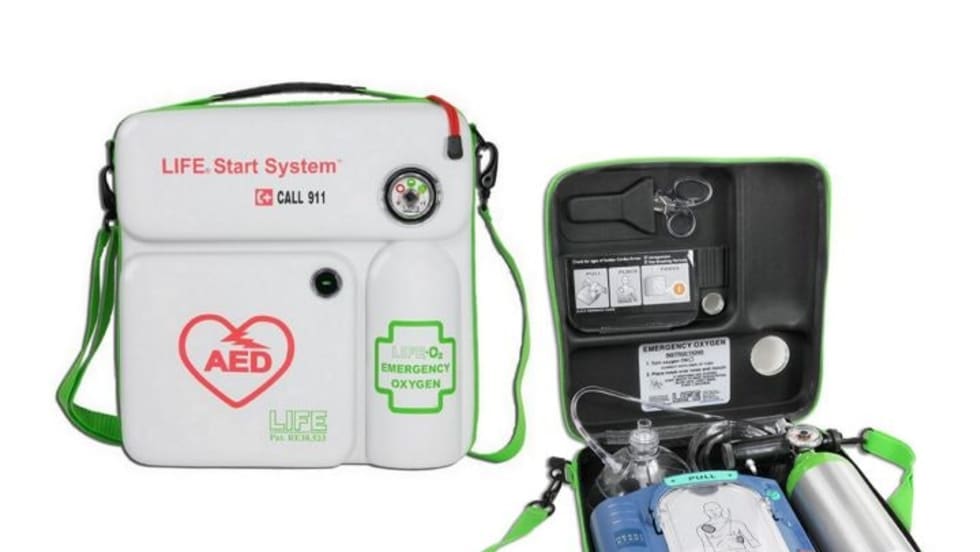 Life Corp.'s StartSystem includes an oxygen unit and optional Automated External Defibrillator (AED). The kit, which weighs only eight pounds, arrives in a durable and water resistant briefcase that measures 12-x-12-x-3 inches.
