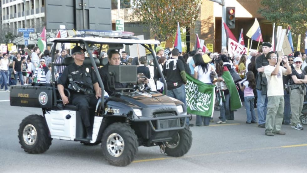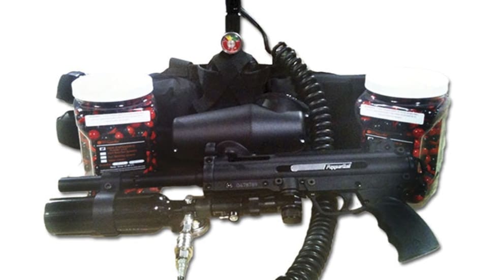 PepperBall Technologies’ TAC-700 launcher fires up to 12 rounds per second and features a high-capacity 200-round hopper, an automatic feed system, and a honed barrel.