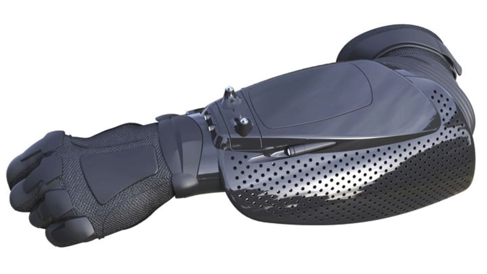 ArmStar's BodyGuard is a combination of armor and electronic control device. The device is slipped over the wearer's forearm with the wearer's hand in a glove that is fitted with a pressure switch.