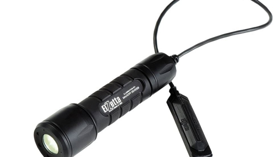 Elzetta Design's proprietary Remote Tape Switch for the Elzetta ZFL-M60 LED Tactical Flashlight provides a fully molded pressure pad, an integrated zip-tie slot for easy attachment (slot may be clipped off if not needed), and a fail-safe constant-on feature.