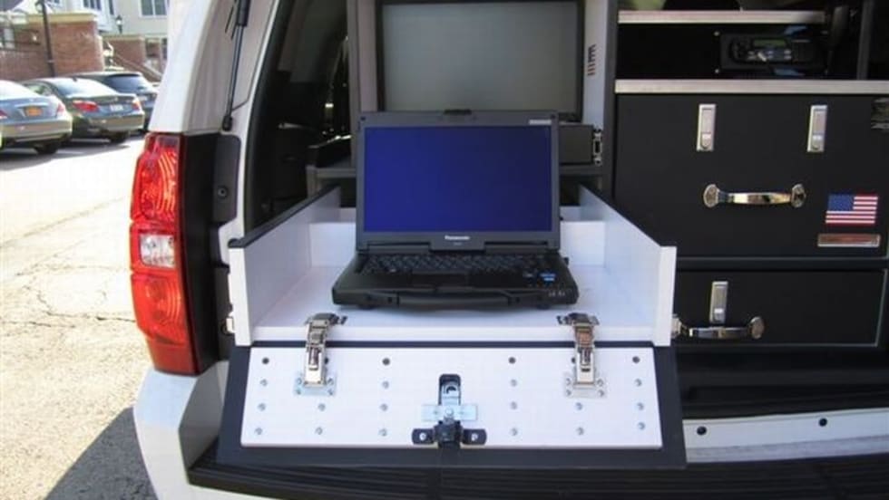 True Tech USA's Advantage Command Cabinet System, which is now available to dealers, offers storage and flat-screen writing surfaces to operate a tactical command center from the rear of a vehicle.